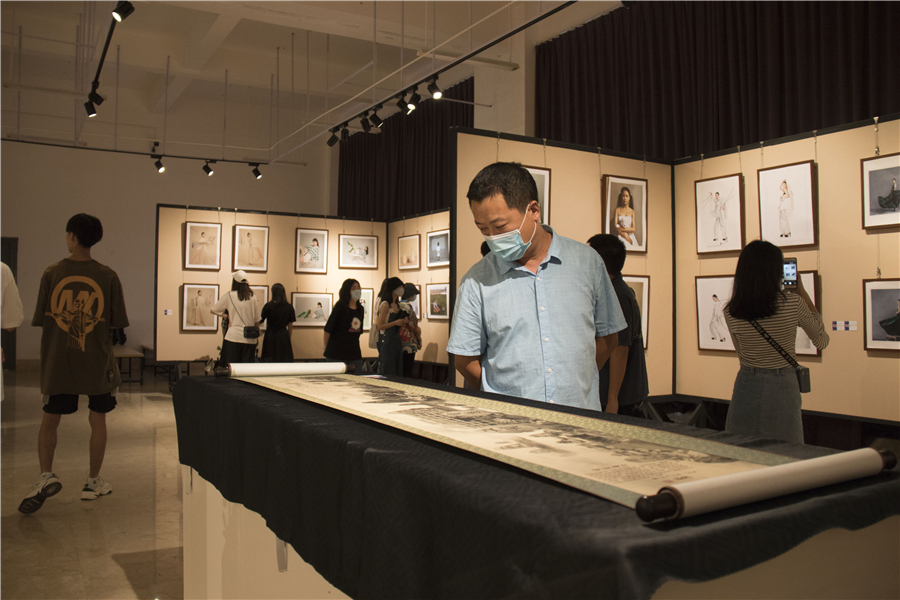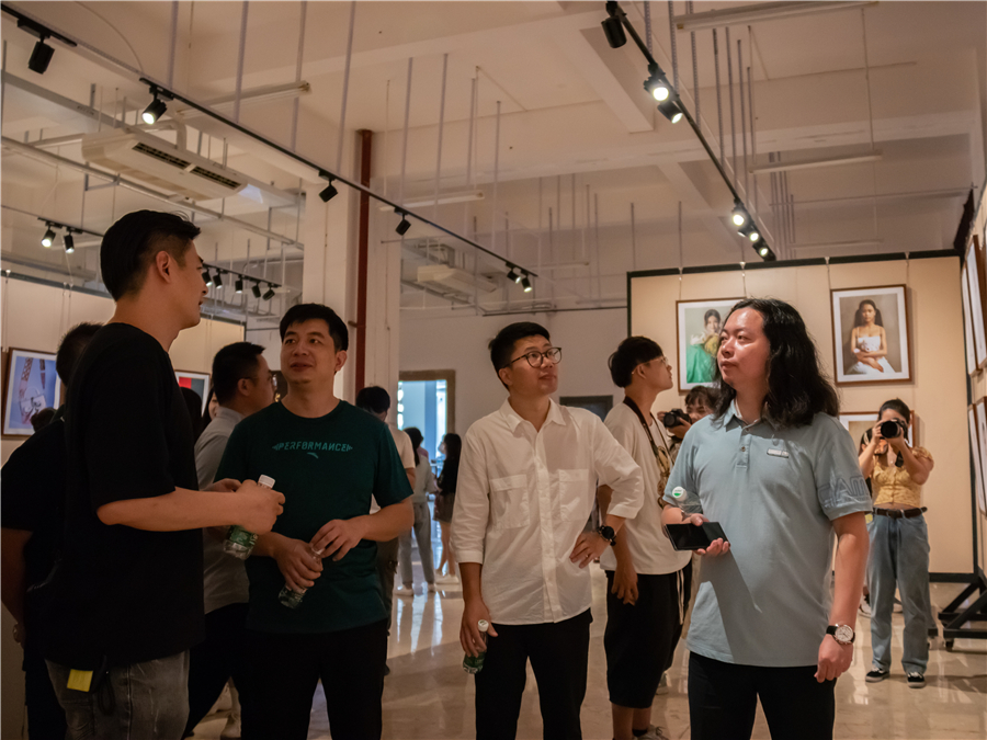 开幕仪式结束后,由美术学院常务副院长龚为以及美术学院教师陪同校领导参观,校领导点评了展览作品并提出了宝贵的建议,有助于提升今后的教学水平。