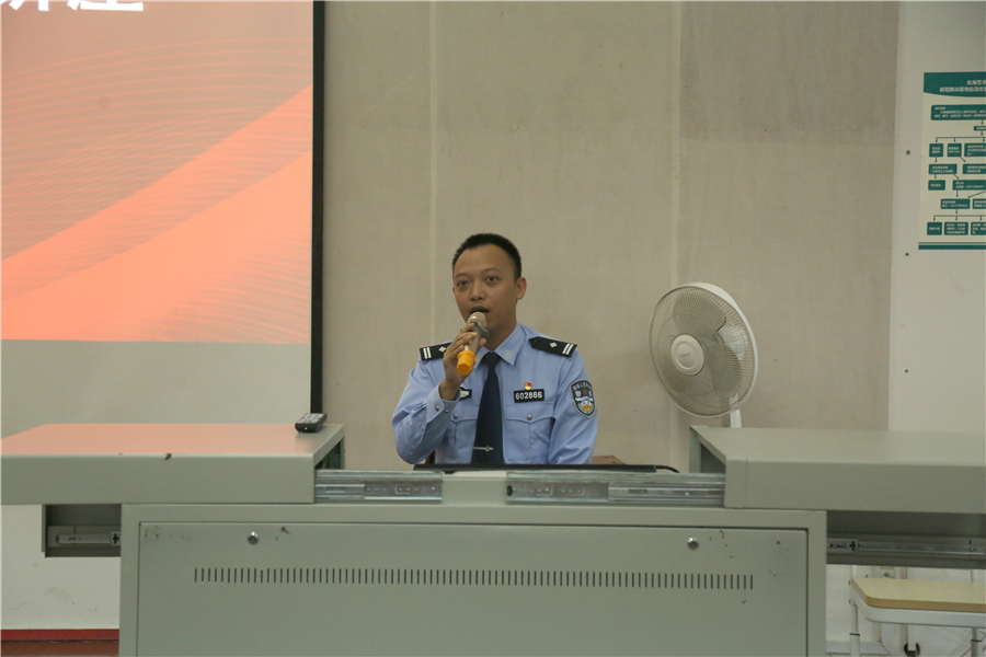 来自龙潭派出所的欧一平所长和韦雷磊副所长分别就近来发生虚假中奖信息、贷款信息、网络购物的新型诈骗案件,剖析了电信网络诈骗的常见形式、电信诈骗案件侦办难点、身边真实发生的典型案例、如何识别防范电信网络诈骗及受骗后的补救措施等方面,详细阐述了电信网络诈骗的原因以及防范电信网络诈骗的主要措施,帮助老师们向全体学生普及鉴别、预防、处理电信网络诈骗等相关知识。