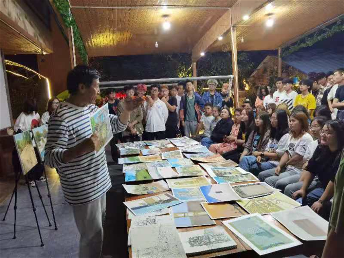 师生们每到一地,根据现场环境认真进行写生创作,相互观摩画作,交流作画心得,教授和老师对学生作品进行指导点评,帮助学生及时改进写生技巧和创作思路。