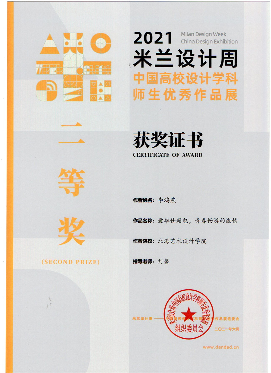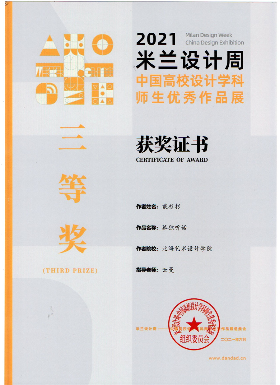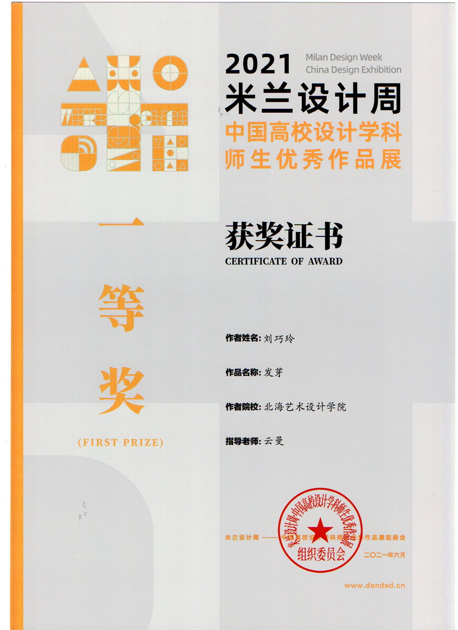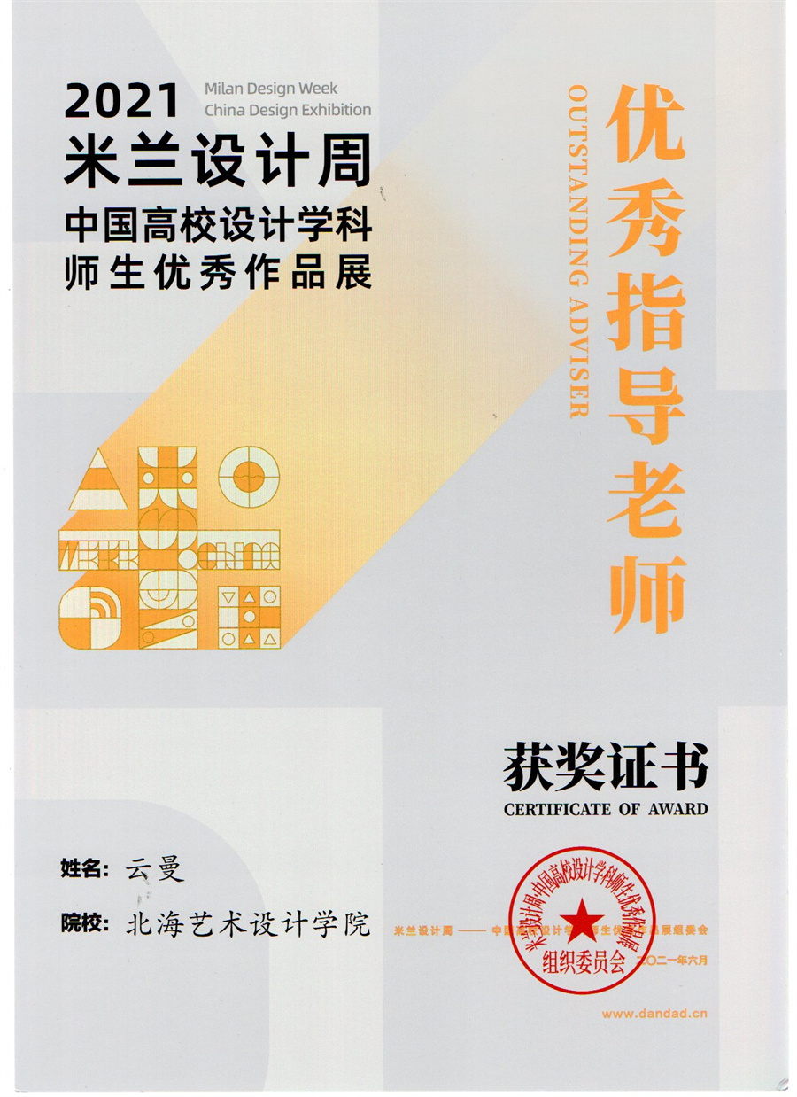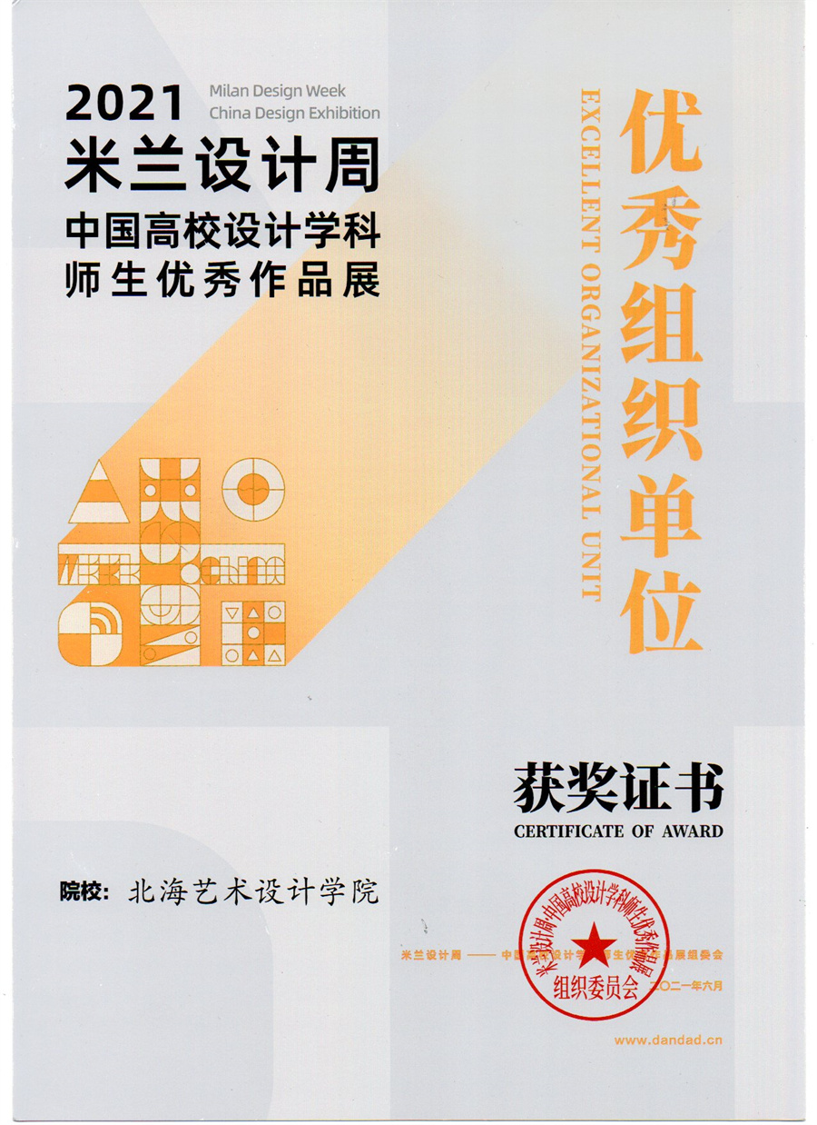 我校设计艺术学院积极响应米兰设计周的艺术精神,向大赛单位选送了诸多作品,从广西赛区至全国赛区,设计艺术学院参赛师生共斩获22个奖项!其中,学生作品共斩获了全国赛区一等奖1项、二等奖4项、三等奖3项;广西赛区一等奖3项、二等奖5项、三等奖2项的好成绩。参赛教师梁雨荷作品《藏年》斩获全国赛区二等奖,教师云曼获得“优秀指导教师”奖项,基于在赛事中取得的突出成绩,我校荣获“优秀组织单位”奖。