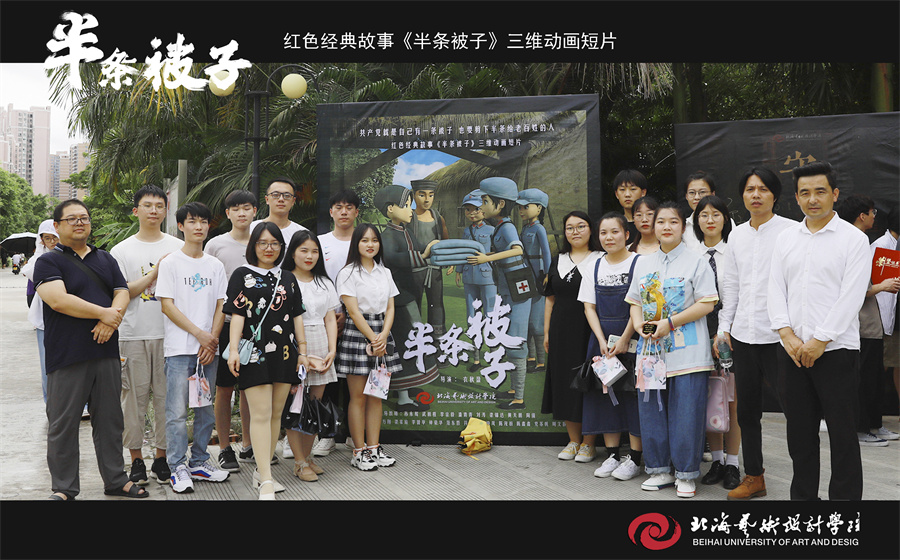《半条被子》是我校动画与传媒学院18级在校学生在“建党百年”命题下制作的动画短片作品,取材于纪念红军长征胜利80周年大会上,习近平总书记讲述了82年前发生在湖南汝城县的“半条被子”的感人故事。3名女红军借宿在湖南汝城县沙洲村村民徐解秀家临走时,将自己仅有的一床被子剪下一半送给老人。什么是共产党?共产党就是自己有一条被子,也要剪下半条给老百姓的人。