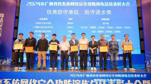 广西教育系统网络安全攻防演习自2021年起每年举办一次,第一年由于我校信息化建设刚开始组建,未能参加。从2023年起,学校领导高度重视网络安全工作,调整人员队伍结构,加强网络安全防护并获得了“应急响应奖”。今年,我校持续加强网络安全基础设施建设,定期组织员工进行网络安全培训,提高全员的安全意识和应对能力,此外还积极参与各类网络安全知识学习和交流活动,不断吸收先进的网络安全防护理念和技术,取得明显的进步,最终在演练中荣获“防守进步奖”。此次获奖,标志着学校在网络安全方面的持续改进和提升,不仅是对其网络安全工作的肯定,也是对全体成员辛勤付出的认可。这一荣誉将激励网络安全工作队伍在未来的工作中继续保持高标准、严要求,为学校构建更加安全的网络环境贡献力量。