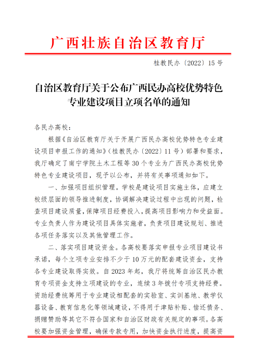 附件:桂教民办〔2022〕15号自治区教育厅关于公布广西民办高校优势特色专业建设项目立项名单的通知
