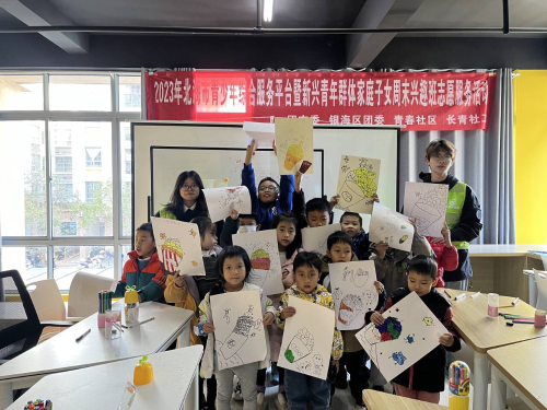 小朋友们认真学习,发挥着想象力。他们天马行空的想象深深吸引了志愿者们,于是志愿者们鼓励他们活跃思维,开动脑筋,用心画出他们独一无二的画作。小朋友们尽情遨游在绘画海洋,志愿者们也履行职责,将原本略显枯燥的知识讲得生动具体,为小朋友们带去了良好的画画体验。