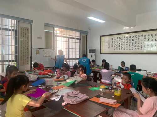 我们首先来到的是北部湾社区,正巧碰见孩子们手拿剪刀在纸上裁出他们心中的“最佳朋友”。在志愿者的指导下,两只乖巧的小兔子被小朋友们展现得栩栩如生。他们将小兔子画出形状,涂上色彩,剪出形状,虽然老师在白板上提供了模板,但小朋友们总有天马行空的想象。志愿者们也发现,每个小朋友的小兔子都不一样,那是他们独一无二的朋友。