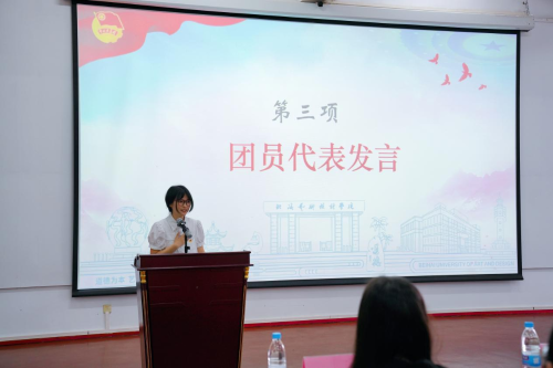 开班仪式中优秀团员代表陈帆依在大会上结合自身经历,生动阐述了共青团员的深刻内涵,并指出共青团不仅是青年成长的摇篮,还是连接个人理想与国家命运的桥梁。她认为,青年应做一块海绵,吸收团史党史中的精神养分;当一座桥梁,搭建心与心的连接;成一盏路灯,始终照亮人民。